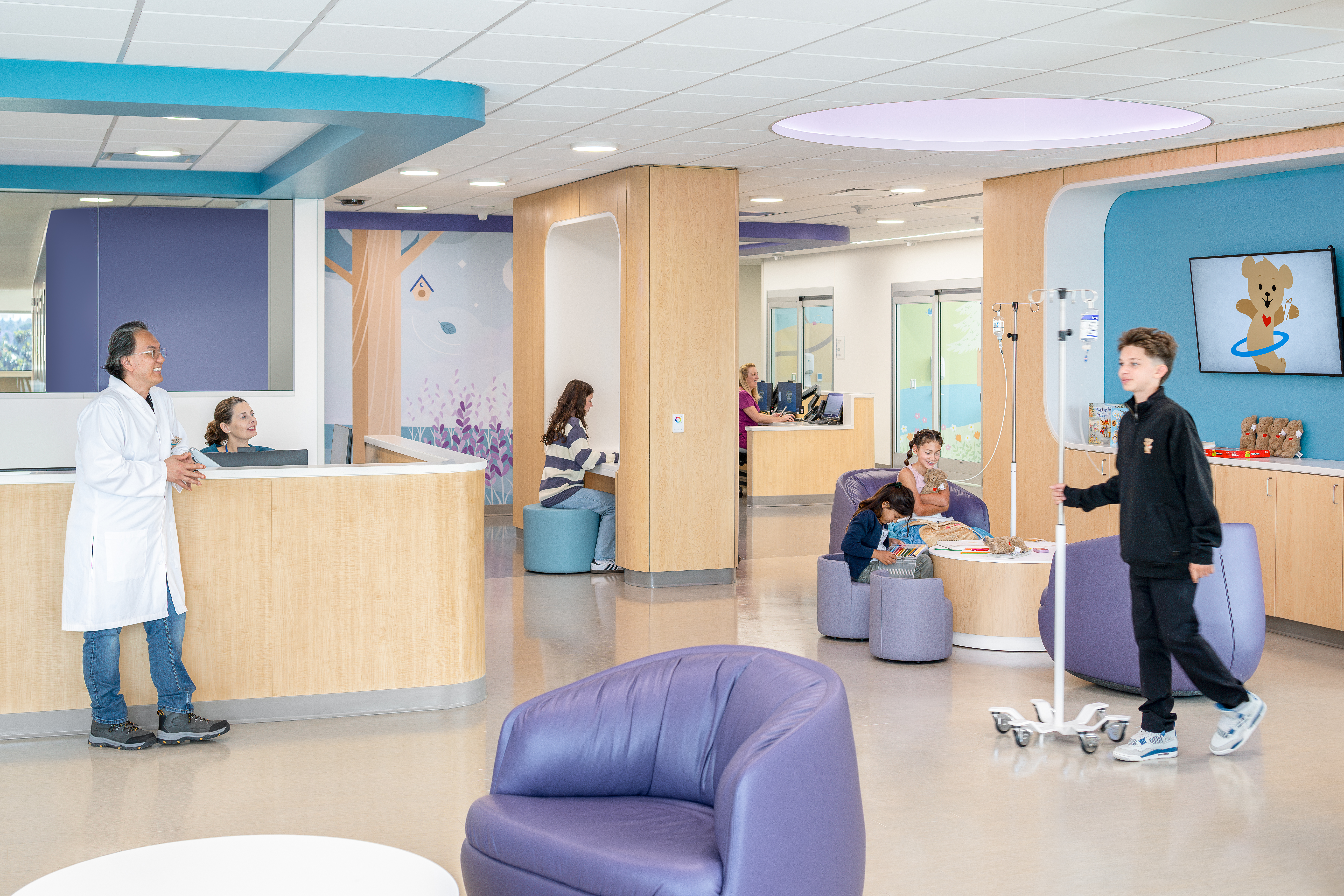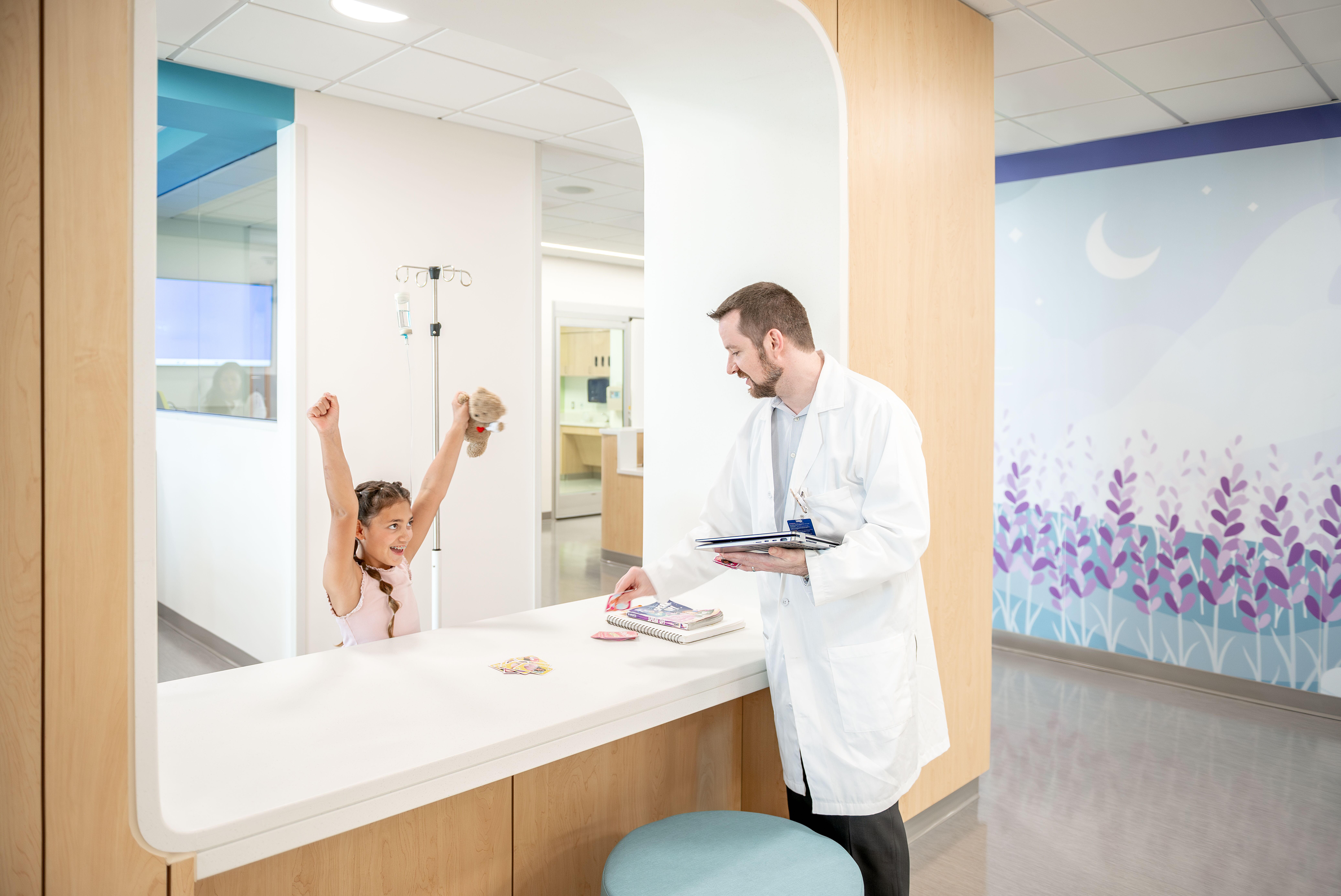 - 20 private infusion rooms where children can rest, play, and receive care in a calming space