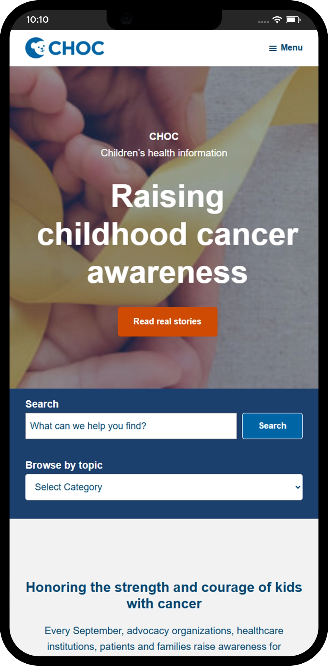 *Disclaimer: Children’s Hospital of Orange County (CHOC) and Rady Children’s Hospital San Diego have united under a combined nonprofit parent organization called Rady Children’s Health to transform pediatric care, research and innovation. This page may include links to both CHOC and Rady Children’s Hospital San Diego websites.