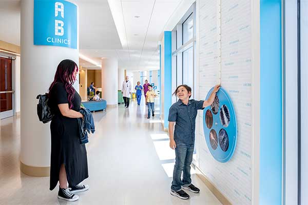 Our new nine-floor tower supports our growing community and is setting new standards for pediatric outpatient care. It houses more than 25 specialty clinics and modern amenities for patients, families and staff. Its unique bright and spacious design was intentionally made to foster connection and creativity.