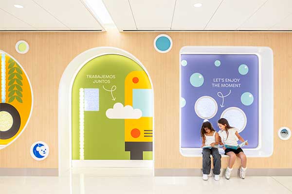 Inspired by our belief in giving every child a chance to thrive, we’ve created moments throughout the building to spark imagination, encourage learning and bring joy to our patients and their families. The interior spaces are bright, open and colorful to create a welcoming environment. Each floor has its own unique theme, helping to encourage learning, discovery, creativity and collaboration.